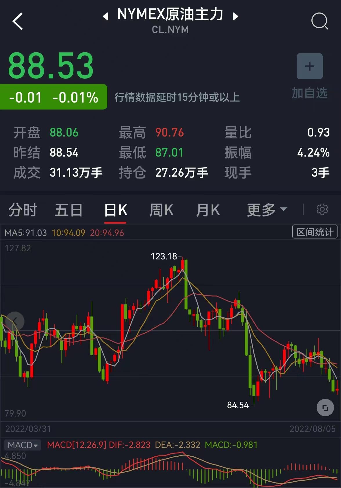 周五,國(guó)際油價(jià)表現(xiàn)分化,美油9月合約跌幅達(dá)0.01%,報(bào)88.53美元/桶。布油10月合約漲幅達(dá)0.57%,報(bào)94.66美元/桶。本周,美油9月合約跌幅達(dá)10.23%,布油10月合約跌幅達(dá)8.95%。