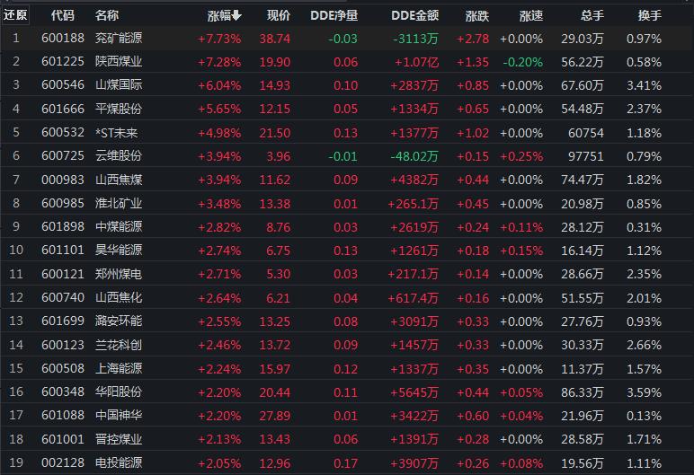 煤炭行業(yè)漲逾3%