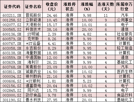 表:今日漲停且連漲4日以上的個股情況: