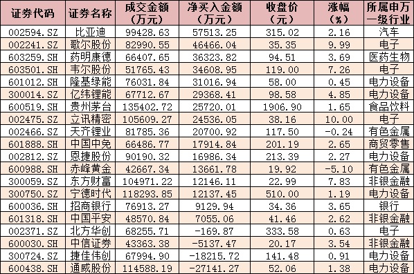 表:8月11日滬、深股通前十大成交活躍股交易情況: