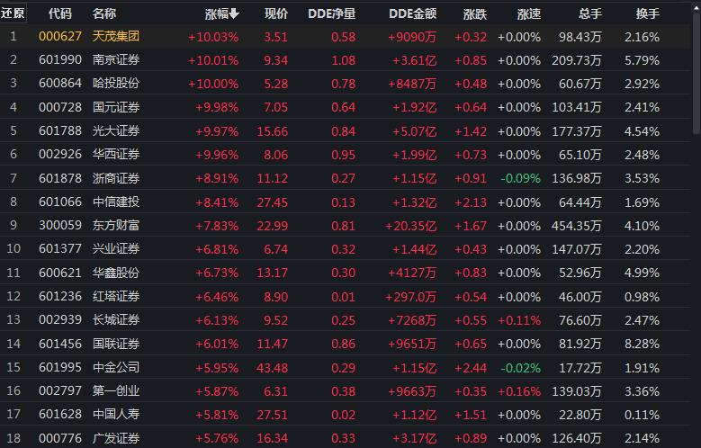 8月11日,非銀金融行業(yè)漲幅居首,達4.53%。其中,弘業(yè)期貨、南京證券、國元證券、華西證券、哈投股份、光大證券、ST海投、天茂集團等8只個股集體漲停。