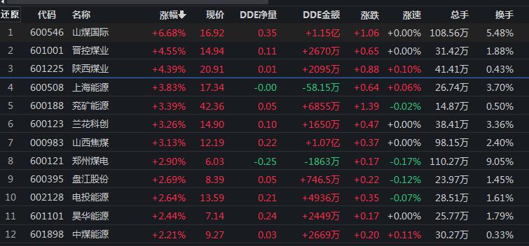 煤炭行業(yè)漲逾2%