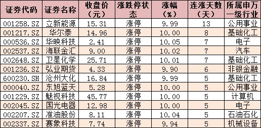 表:今日漲停且連漲5日以上的個(gè)股情況: