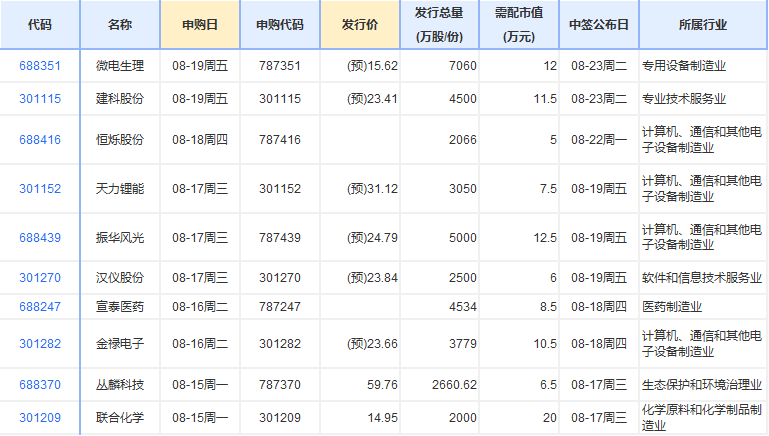 新股方面,根據發(fā)行安排,A股市場下周(8月15日-8月19日)將有10只新股申購。