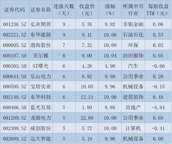 表:連續(xù)上漲5天且今日收盤漲停股一覽