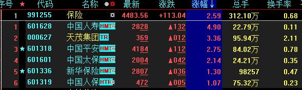 具體看,截至8月24日上午收盤,保險板塊走強,漲幅居首,達2.59%。其中,中國人壽、天茂集團、中國平安、中國太保等個股漲幅超2%。