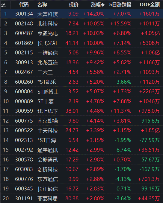 8月30日,申萬一級(jí)行業(yè)中通信領(lǐng)漲,漲幅達(dá)1.44%。行業(yè)104只交易中的個(gè)股,有73只上漲,占比70.19%,其中,有7只個(gè)股漲停,9只個(gè)股漲幅超5%。