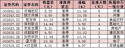 表:今日漲停且連漲3日以上的個股情況: