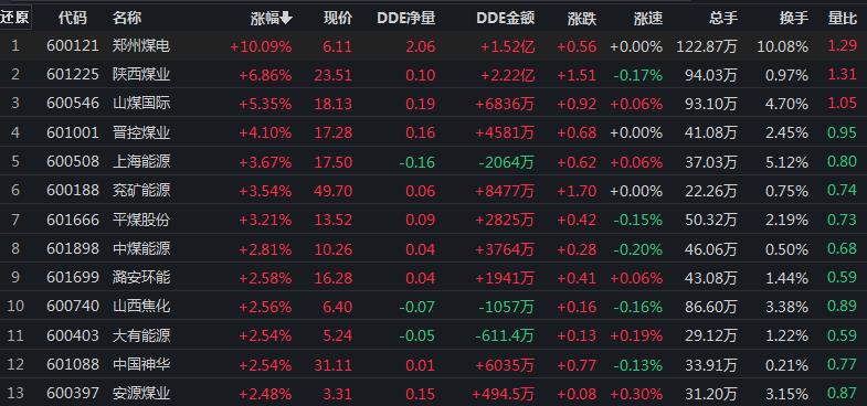 9月1日,煤炭行業(yè)漲幅居首達2.43%。其中,鄭州煤電漲停,陜西煤業(yè)、山煤國際等煤炭股,漲幅居前均超5%。