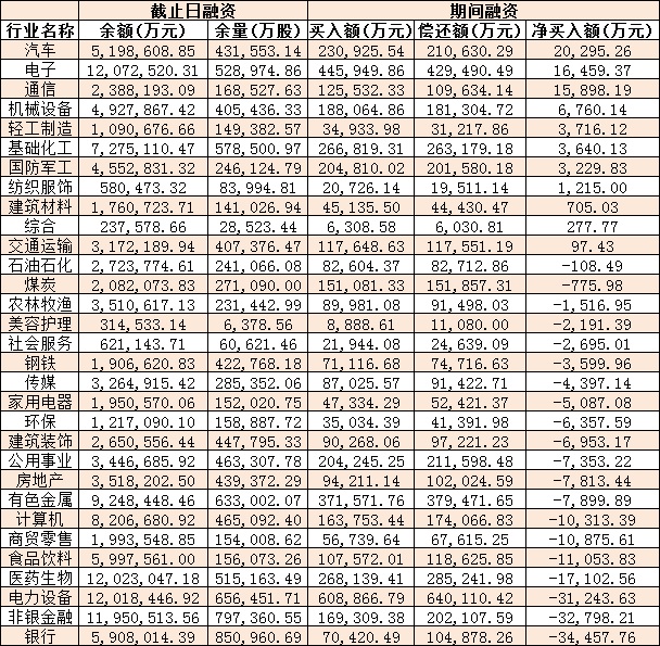 表:9月8日申萬一級行業(yè)兩融交易情況: