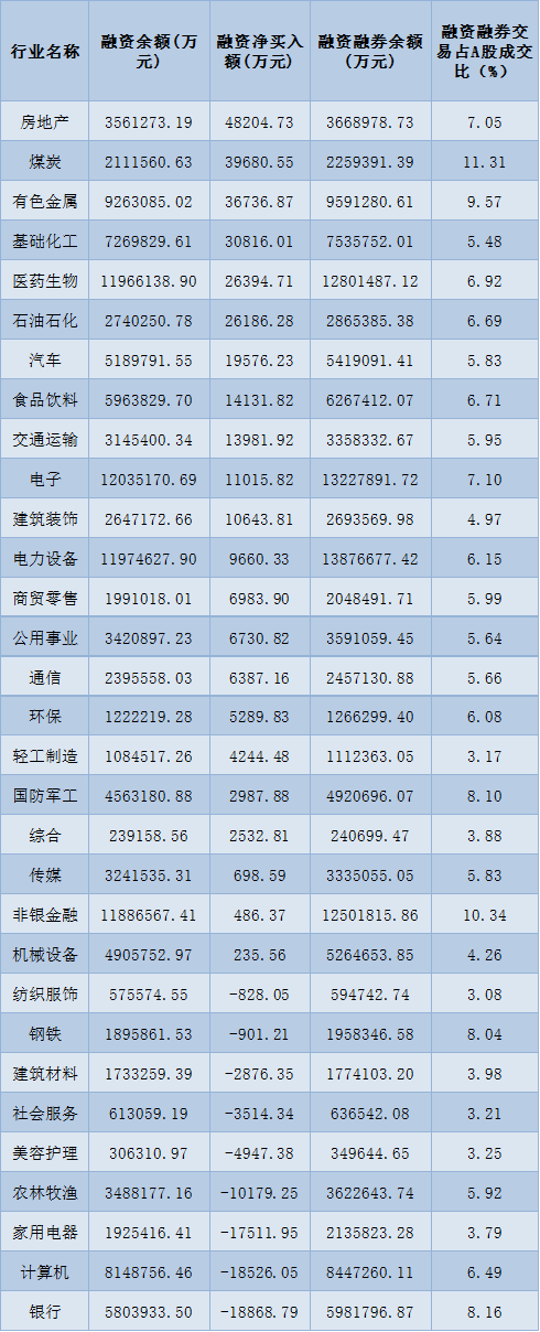 表:9月13日申萬(wàn)一級(jí)行業(yè)兩融交易情況: