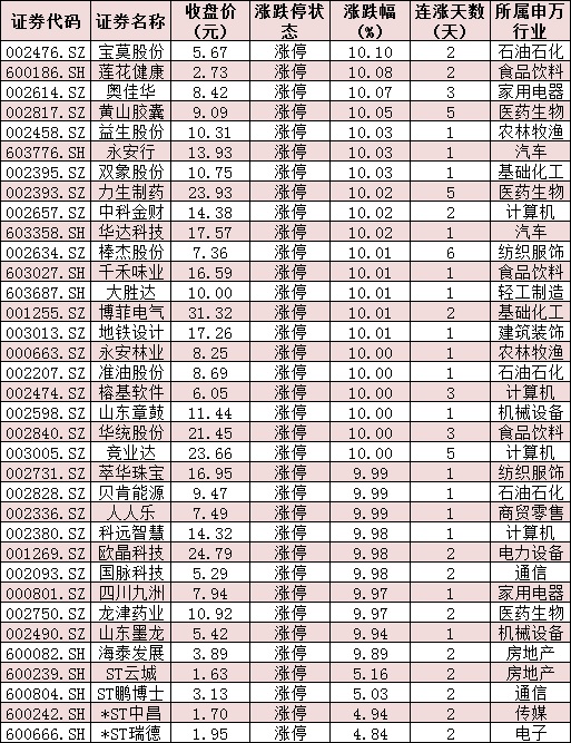 漲停板方面,10月10日,有35只個股漲停,其中,有7只漲停股,股價已連續(xù)上漲3個交易日以上。從行業(yè)方面看,計算機行業(yè)漲停股為4只。