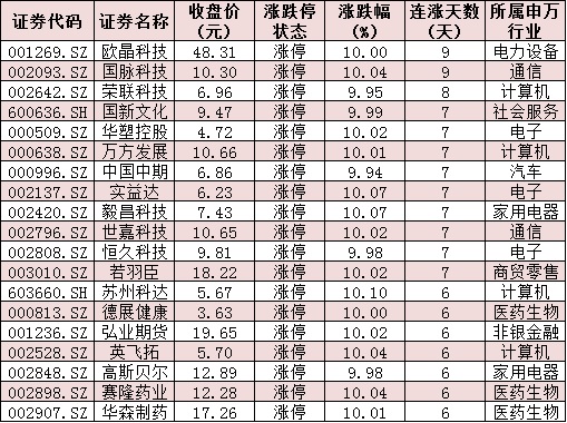 表:連續(xù)上漲6日且今日收盤漲停個(gè)股情況: