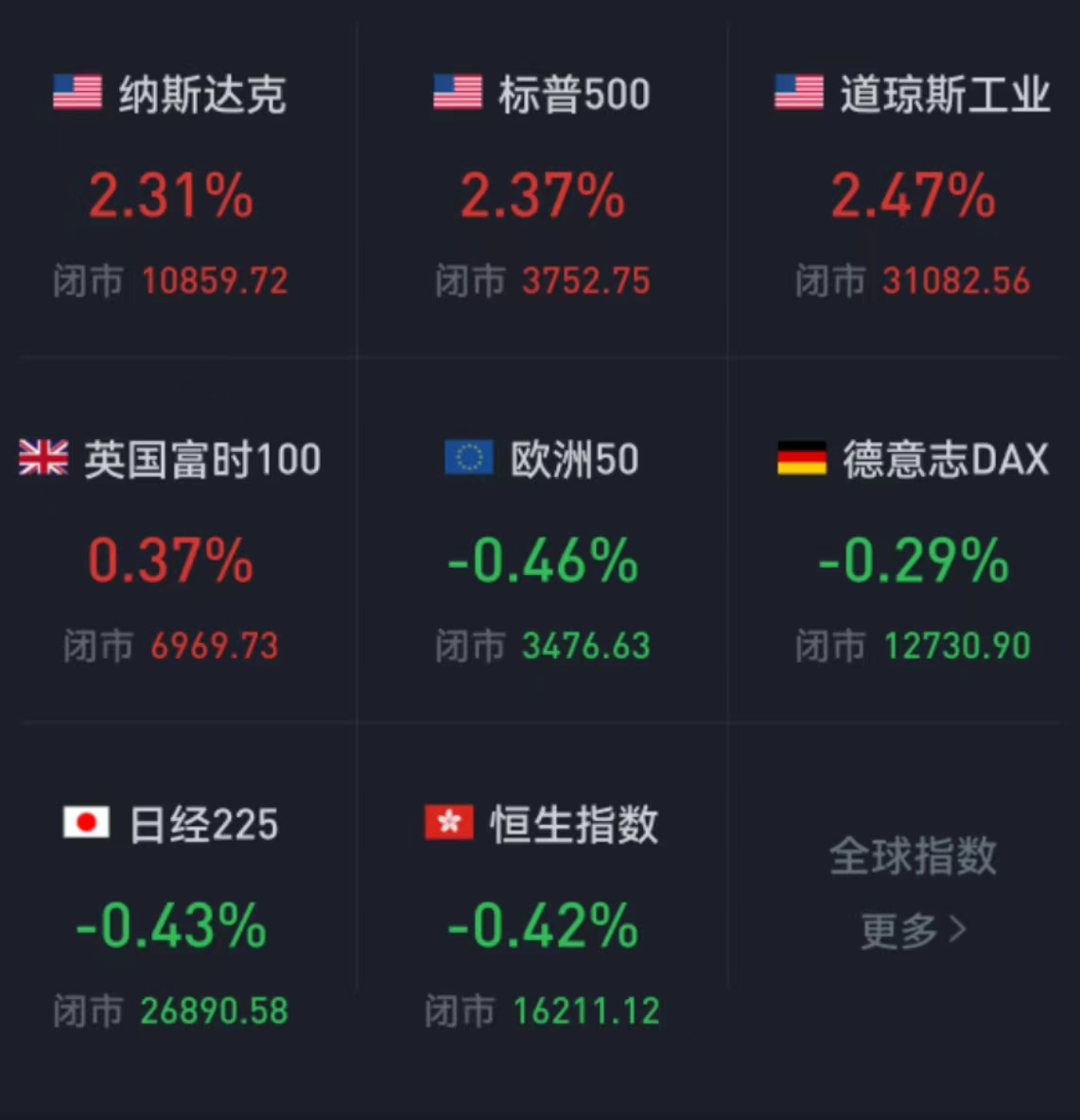 周五,美國三大股指全線收漲,道指漲2.47%報(bào)31082.56點(diǎn),標(biāo)普500指數(shù)漲2.37%報(bào)3752.75點(diǎn),納指漲2.31%報(bào)10859.72點(diǎn)。本周,美股周漲幅創(chuàng)階段新高,道指漲4.89%,標(biāo)普500指數(shù)漲4.74%,納指漲5.22%。