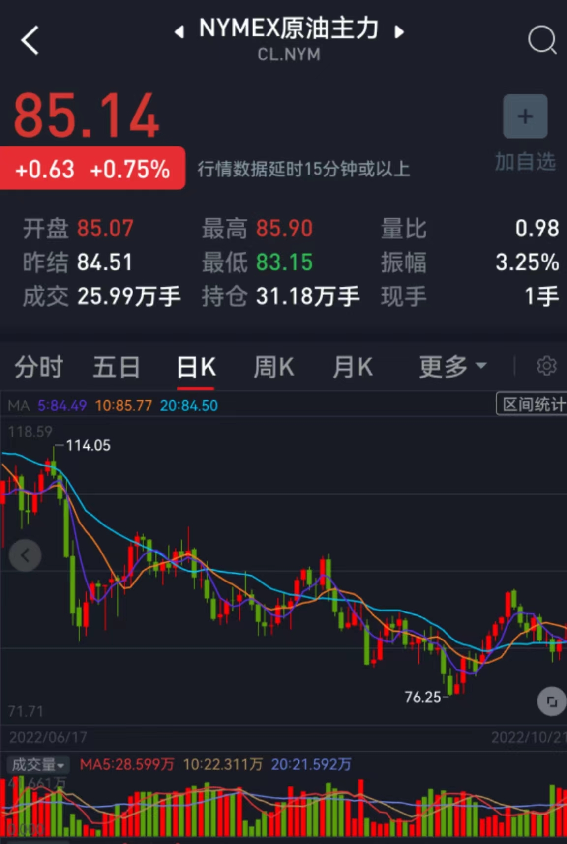 周五,國際油價(jià)全線上漲,美油12月合約漲0.75%,報(bào)85.14美元/桶。布油12月合約漲1.32%,報(bào)93.6美元/桶。本周,美油12月合約跌0.55%,布油12月合約漲2.15%。
