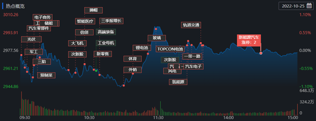 截至10月25日收盤,上證指數(shù)跌0.04%,收報(bào)2976.28點(diǎn),深證成指跌0.51%,收報(bào)10639.82點(diǎn),創(chuàng)業(yè)板指跌0.95%,收報(bào)2314.55點(diǎn);滬深兩市合計(jì)成交額8028.9億元;北向資金凈買入28.45億元;A股中上漲個(gè)股為1853只,下跌個(gè)股2849只。