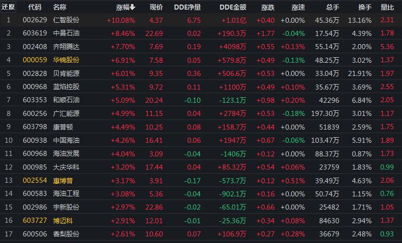 11月7日,石油石化行業(yè)漲幅居首,達(dá)2.38%。其中,仁智股份漲停。