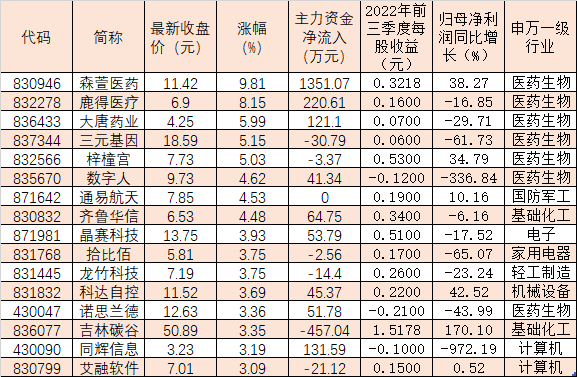 從相關(guān)樣本股表現(xiàn)看,11月21日,47只北證50樣本股股價實現(xiàn)上漲,占比超九成。其中,森萱醫(yī)藥表現(xiàn)搶眼,漲幅達9.81%,鹿得醫(yī)療、大唐藥業(yè)、三元基因、梓橦宮等4只樣本股漲幅也均超5%。