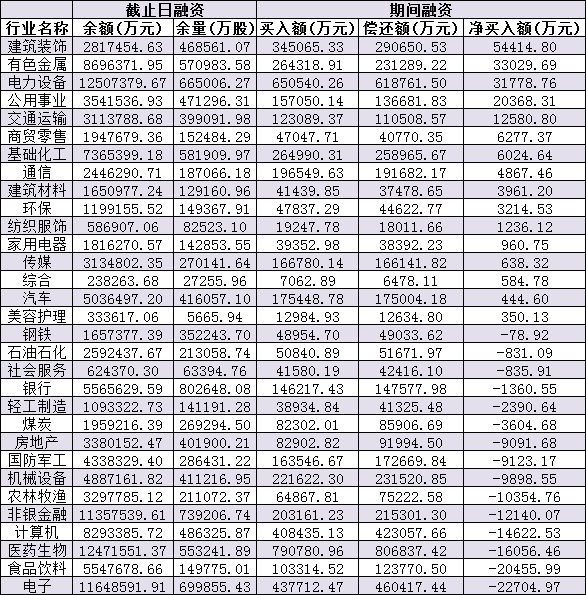 表:11月23日申萬一級(jí)行業(yè)兩融交易情況: