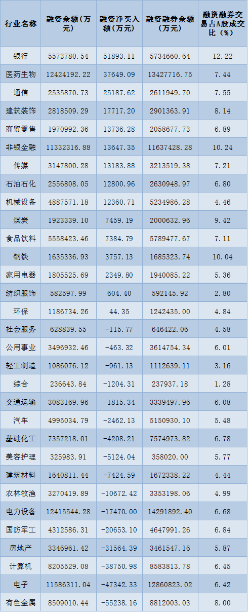 表:11月28日申萬一級行業(yè)兩融交易情況: