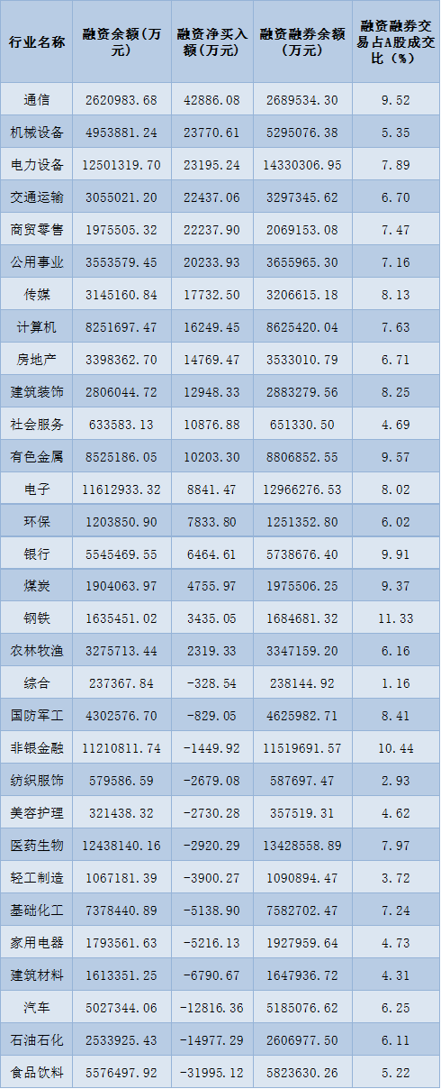 表:12月1日申萬(wàn)一級(jí)行業(yè)兩融交易情況: