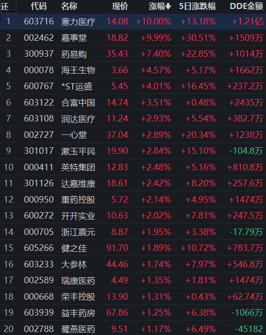 從早盤(pán)表現(xiàn)強(qiáng)勢(shì)的醫(yī)藥商業(yè)行業(yè)看,截至12月2日11:30,該行業(yè)交易中的31只個(gè)股,有28只上漲,其中3只漲幅超5%。從資金流向看,該行業(yè)今天上午大單資金凈流入額達(dá)2.07億元,居行業(yè)第5位。
