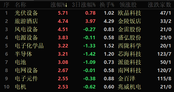 東方財富行業(yè)方面,截至12月26日11:30,86類行業(yè)中73類上漲,占比84.88%,其中,光伏設(shè)備行業(yè)漲幅居首,達5.71%,旅游酒店和風(fēng)電設(shè)備漲幅也均超4%。此外,教育跌幅居首,達1.62%。