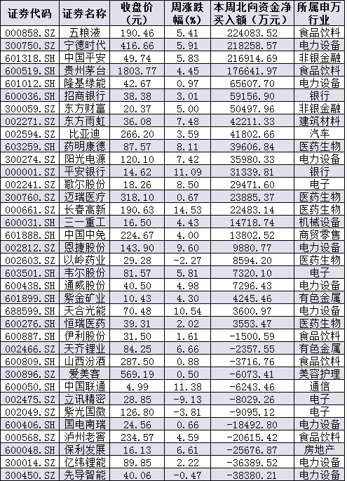 回顧本周三大指數(shù)的走勢來看,上證指數(shù)期間累計(jì)漲2.21%,深證成指期間累計(jì)漲3.19%,創(chuàng)業(yè)板指期間累計(jì)漲3.21%。值得關(guān)注的是,本周,北向資金凈買入達(dá)200.19億元。