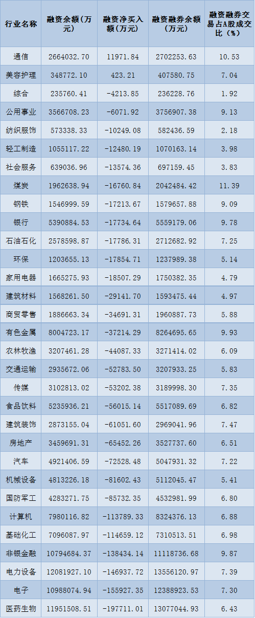表:1月20日申萬(wàn)一級(jí)行業(yè)兩融交易情況: