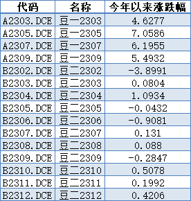 表:國(guó)內(nèi)大豆主要期貨品種漲跌幅一覽