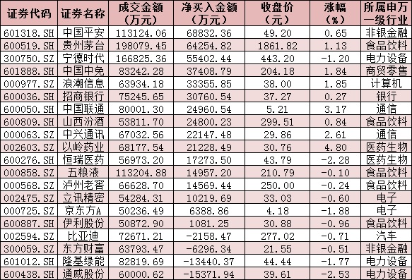 表:今日滬、深股通前十大成交活躍股交易情況: