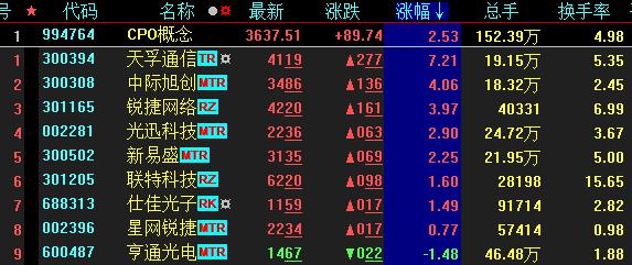 具體看,截至2月24日上午收盤,CPO(共封裝光學)概念走強板塊表現(xiàn)搶眼,漲幅達2.53%。其中,天孚通信漲幅達7.21%。