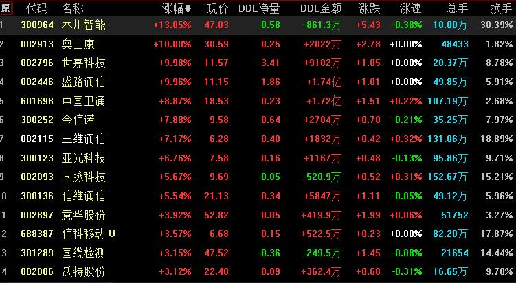 具體看,截至3月6日上午收盤,6G概念板塊漲幅居首達4.69%。其中,本川智能漲幅居前,超13%。
