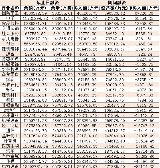 表:3月3日申萬一級行業(yè)兩融交易情況: