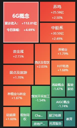 熱點方面,截至3月6日上午收盤,6G概念、養(yǎng)雞等行業(yè)漲幅居前。另外,教育、房地產(chǎn)服務(wù)等行業(yè)跌幅居前。