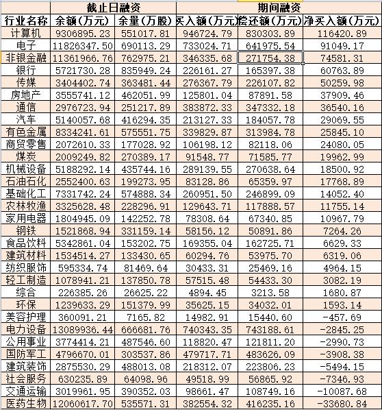 表:3月6日申萬一級行業(yè)兩融交易情況: