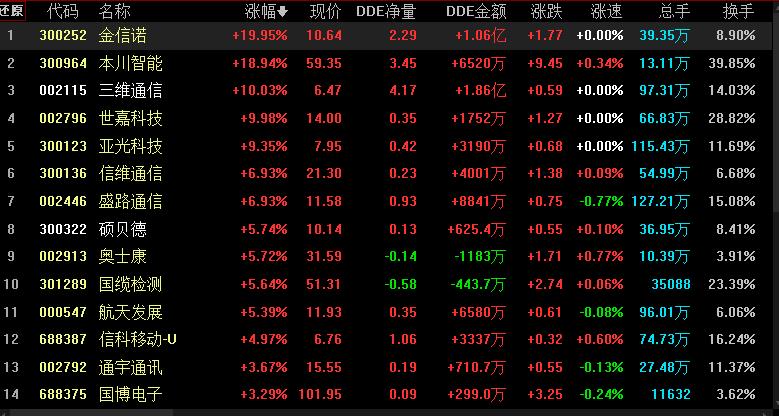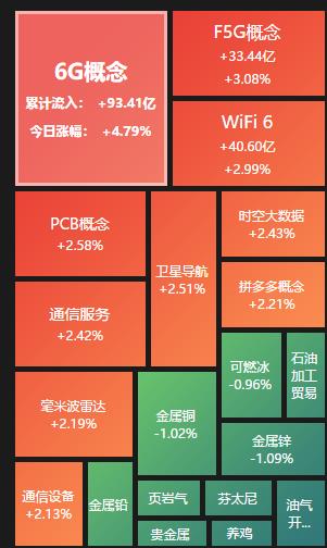 具體來看,截至3月8日上午收盤,6G概念板塊再度飆升,漲幅居首達(dá)4.79%。其中,金信諾、本川智能、三維通信等概念股漲幅均超10%。