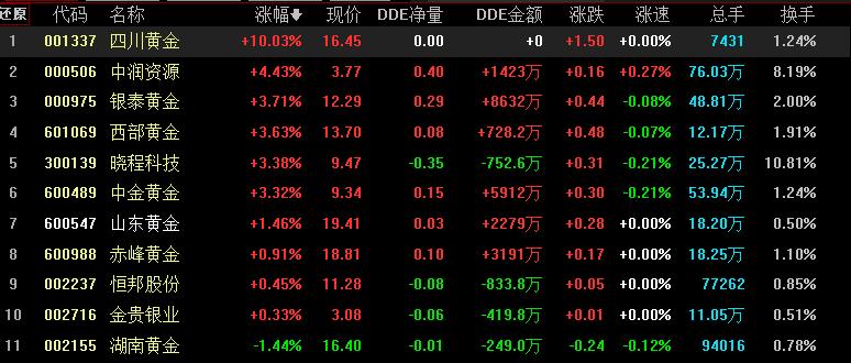 具體看,截至3月10日上午收盤,貴金屬板塊漲幅居前,達(dá)2.75%。其中,四川黃金再度漲停。