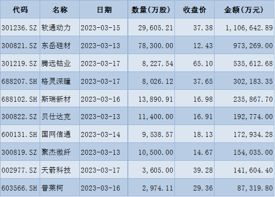 表:下周解禁市值前十位(以本周收盤價(jià)計(jì)算)