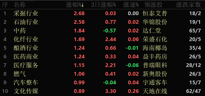 東方財(cái)富行業(yè)方面,截至3月28日11:30,86個(gè)行業(yè)板塊中32類上漲,占比37.21%,其中,采掘和石油行業(yè)漲幅居前,均超2%,分別達(dá)2.68%和2.58%。下跌方面,半導(dǎo)體跌幅居首,達(dá)1.74%,另有包括電子化學(xué)品、能源金屬和電子元件等在內(nèi)的9個(gè)行業(yè)跌幅均超1%。