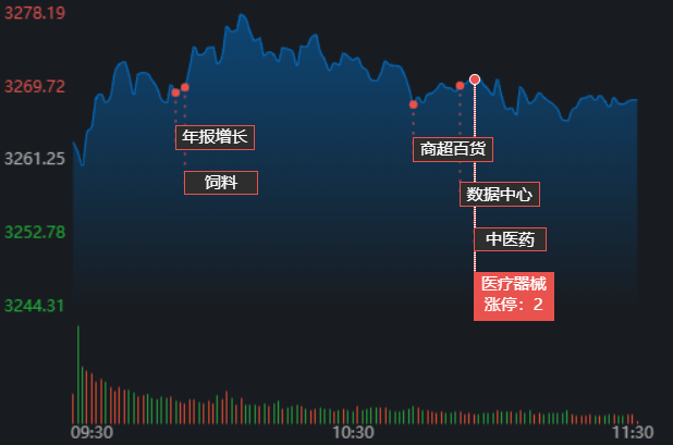 3月31日早盤,A股三大指數(shù)沖高震蕩,創(chuàng)業(yè)板指表現(xiàn)較強(qiáng)。截至上午11:30,上證指數(shù)漲0.22%,報(bào)3268.31點(diǎn);深證成指和創(chuàng)業(yè)板指漲幅分別為0.27%和0.37%;滬深兩市成交額合計(jì)5486.2億元,較前一交易日縮減5.08%??傮w來看,A股市場(chǎng)個(gè)股漲多跌少,漲跌停方面,有22只個(gè)股漲停,跌停股1只。