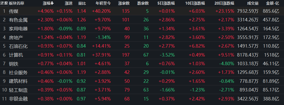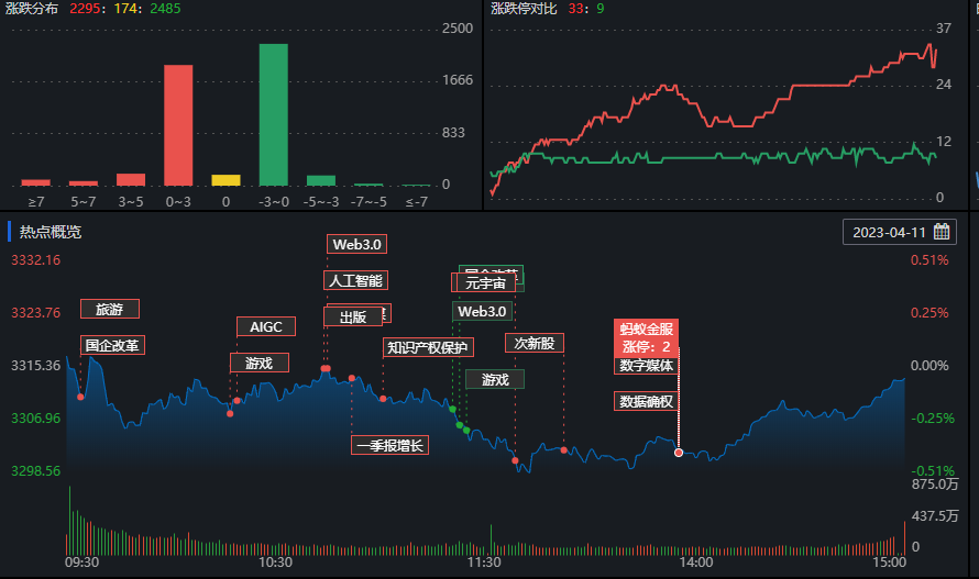 4月11日,A股三大指數(shù)尾盤拉升漲跌互現(xiàn),滬指3300點失而復得,A股成交金額連續(xù)6個交易日超萬億元。傳媒板塊領漲,多只傳媒股漲停。