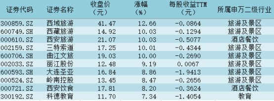表:社會服務(wù)行業(yè)個(gè)股今日漲幅前十位一覽