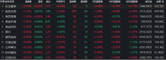 社會服務(wù)行業(yè)漲幅居首
