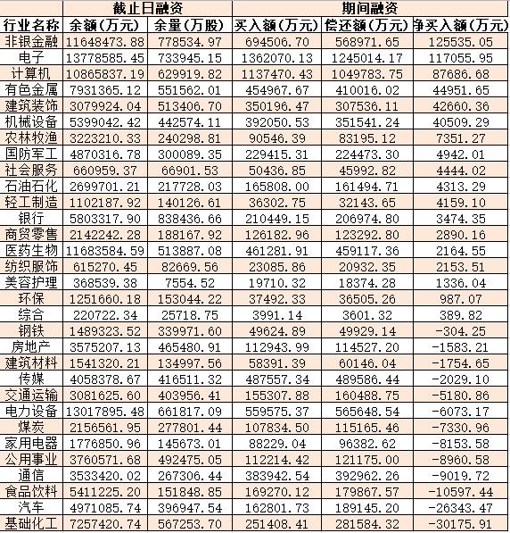 表:4月17日申萬一級行業(yè)兩融交易情況: