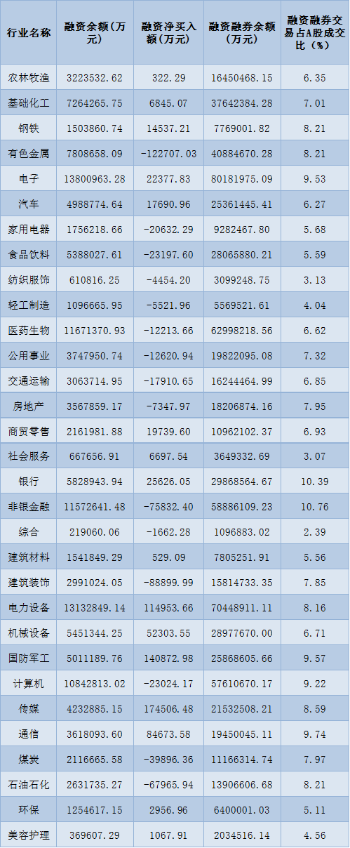 表:4月24日申萬一級行業(yè)兩融交易情況: