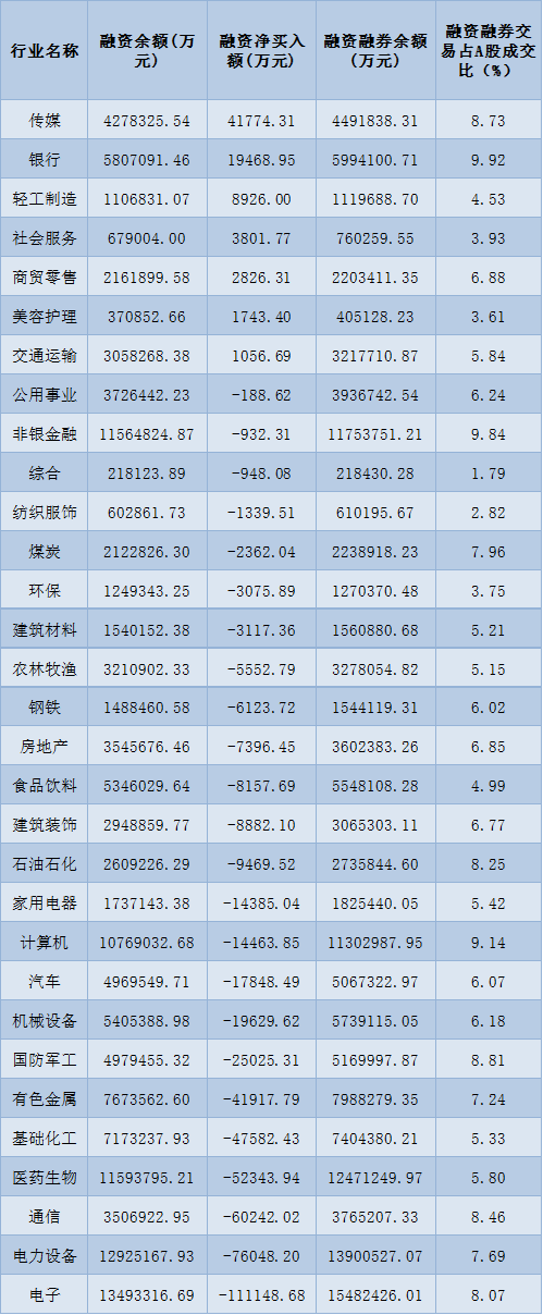 表:4月26日申萬一級行業(yè)兩融交易情況: