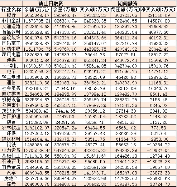 表:5月8日申萬(wàn)一級(jí)行業(yè)兩融交易情況: