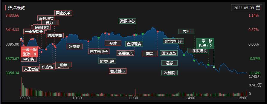 早盤滬指站上3400點,券商板塊飆升逾4%,滬深兩市成交額達7600億...2023-05-09 12:15