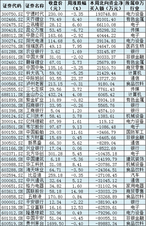 資金方面,周五(5月19日),北向資金凈賣出金額達(dá)22.26億元。本周,北向資金累計(jì)凈賣出金額達(dá)16.91億元,從前十大成交活躍股來看,寧德時(shí)代、天齊鋰業(yè)、立訊精密、昆侖萬維等4只個(gè)股北向資金凈買入金額均超6億元。另外,貴州茅臺(tái)、中國(guó)平安、隆基綠能等個(gè)股遭北向資金凈賣出金額均超7億元。